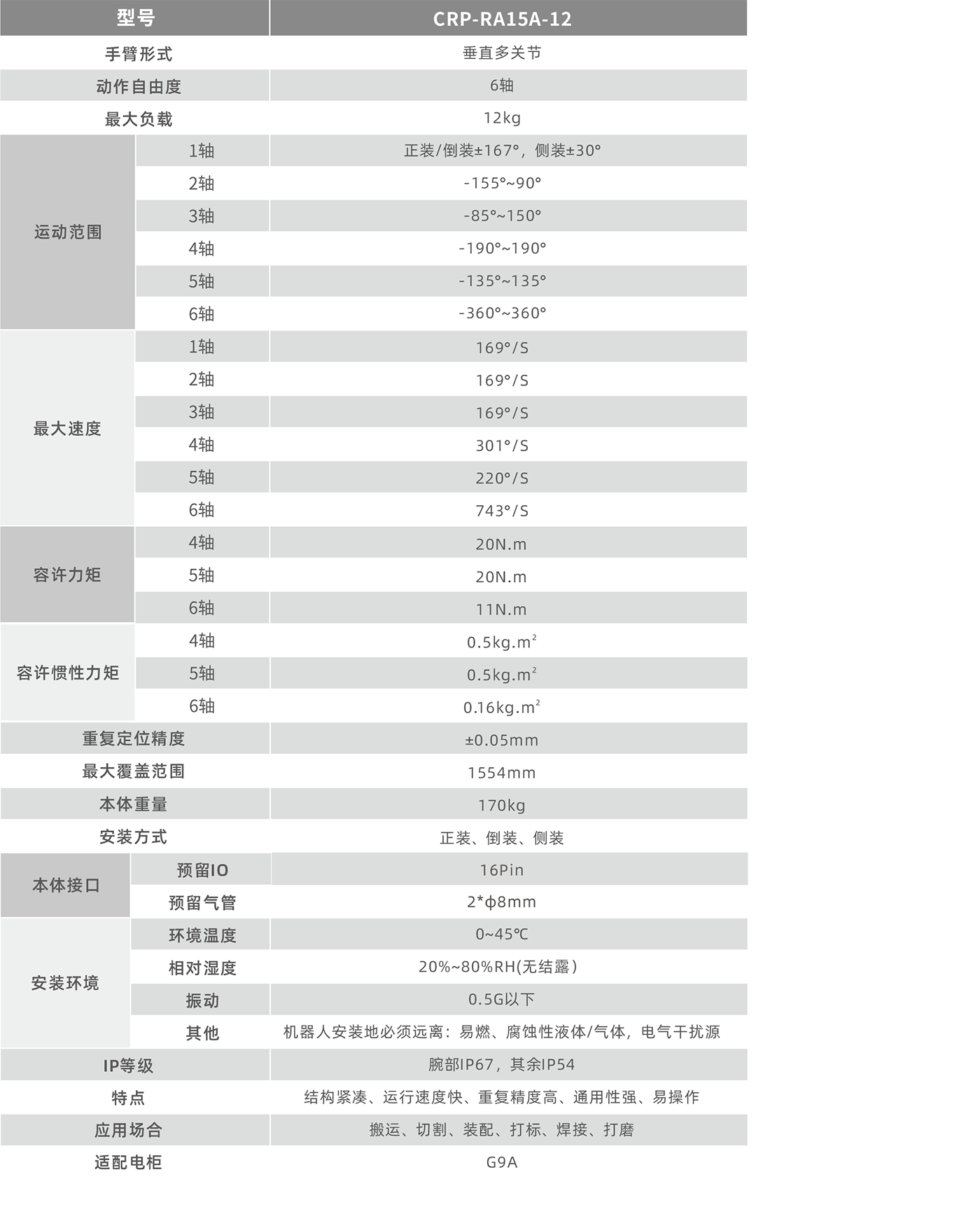 机器人整体结构高度紧凑、轻量化,更加轻巧适用,尤其腕部更加小巧,满足更多的场景。