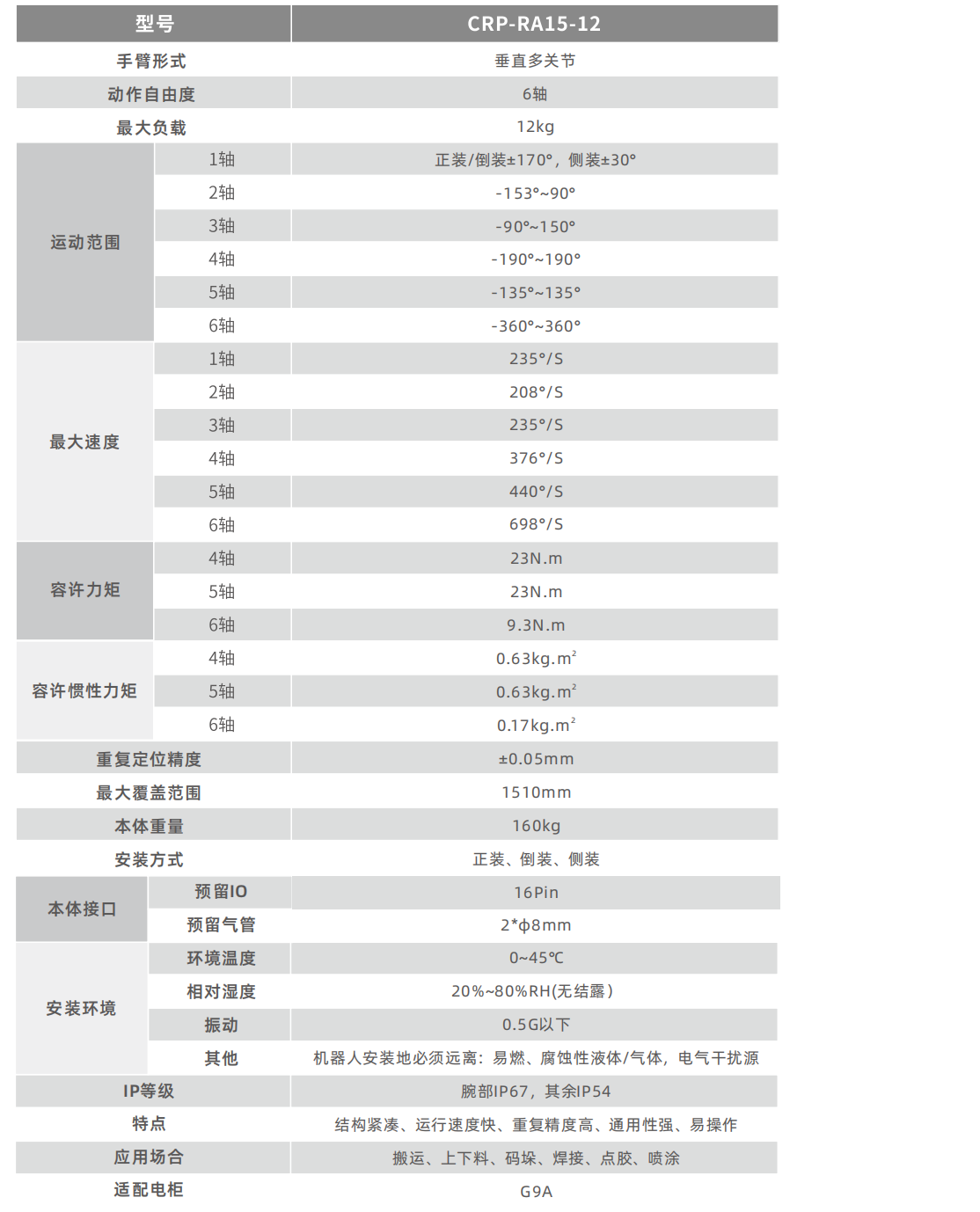 机器人整体结构高度紧凑、轻量化,更加轻巧适用,尤其腕部更加小巧,满足更多的场景。