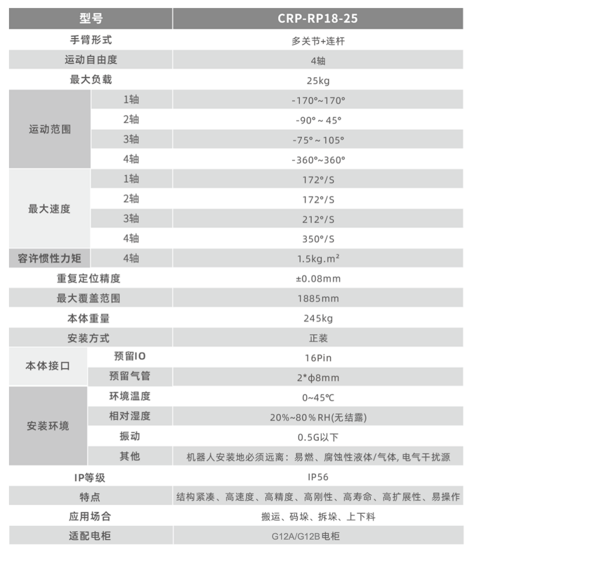 • 4轴为25型谐波减速机结构,刚性更强,满足搬运场景的特殊要求。